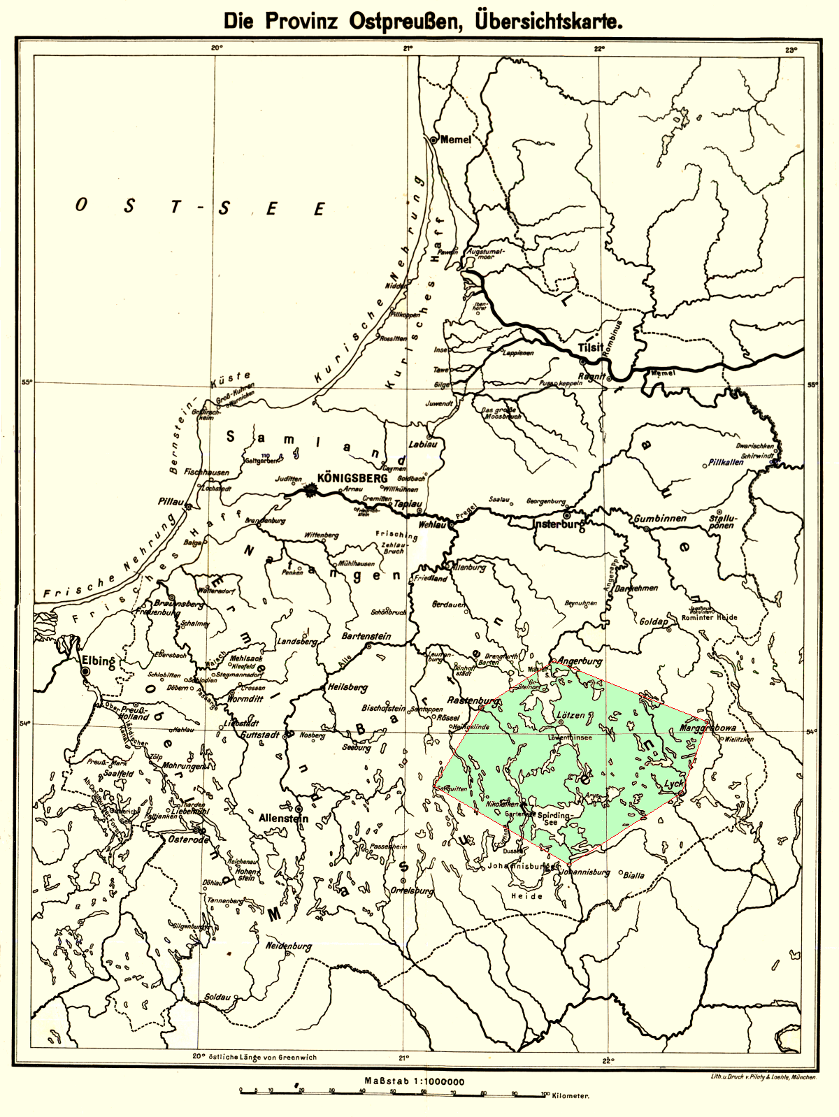 Treuburg und Goldap mit 309 m. Der Bereich südlich Ortelsburg, Johannisburg und Lyck wird auch als Heidelandmasuren