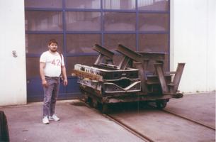 Ein klassischer Feldbahnwagen in Normalspur. Der Hansi wusste damals noch nicht, dass er einmal Triebwagen und Loks fahren würde, auch war er damals schlanker und nicht mehrmaliger Vater, aber Feldeisenbahner war er schon damals.