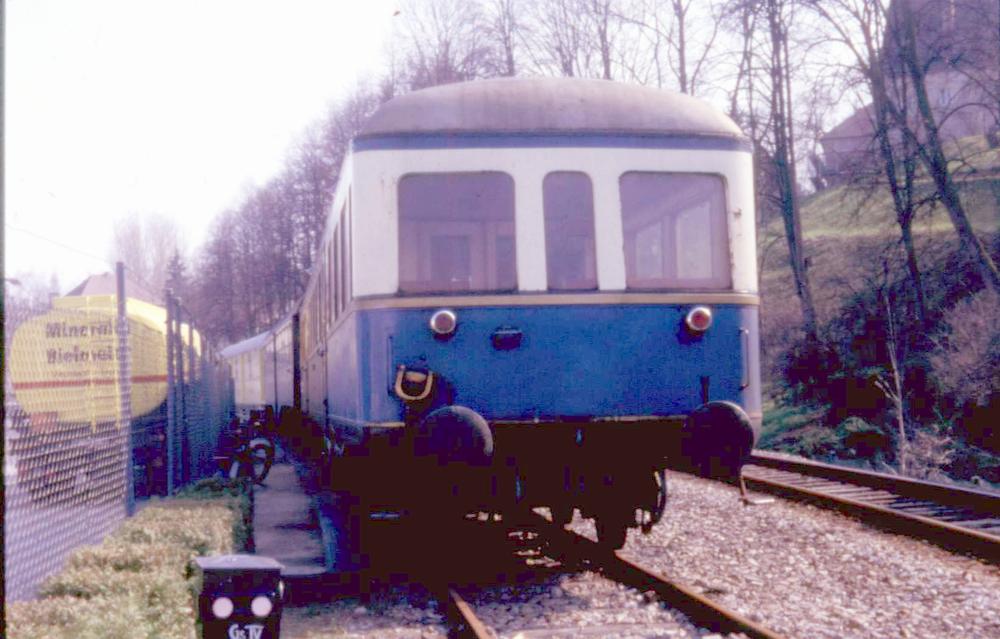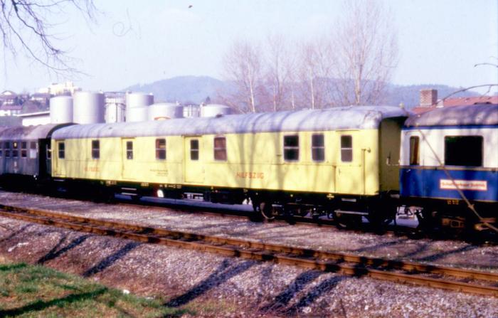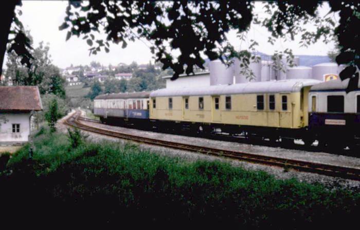 Abgestellte Triebwagen und Wagen neben dem Hauptgleis Richtung Blaibach