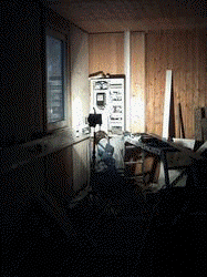 Die Schiebetore sind inzwischen angebracht. Unser Elektriker hat den Strom angeschlossen, und es sind noch viele weitere Arbeiten zu erledigen. Jedoch der erste Winter steht nun vor der Tür und nachdem wir alles winterfest gemacht haben, müssen wir für 2004 Pause machen und alle diese Arbeiten auf das nächste Jahr vertagen. Der Winter kann kommen. Und wie er gekommen ist! Schnee gab es ab Weihnachten auf einmal reichlich. Nach Weihnachten haben wir die halbe Strecke freigeschippt um am Endpunkt abgestellte Fahrzeuge zum Schuppen zu fahren. Das werden wir zukünftig vermeiden, denn der Winter kann hier schnell kommen, viel Schnee bringen und lange dauern. Nicht ohne Grund verläuft auf unserer Strecke im Winter eine Loipe. Selbst Ostern 2005 lag noch an einigen Stellen etwas Schnee. Drei Wochen zuvor war es sogar noch sehr viel, was hier lag. |