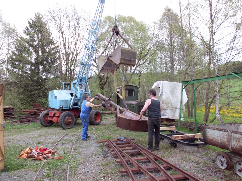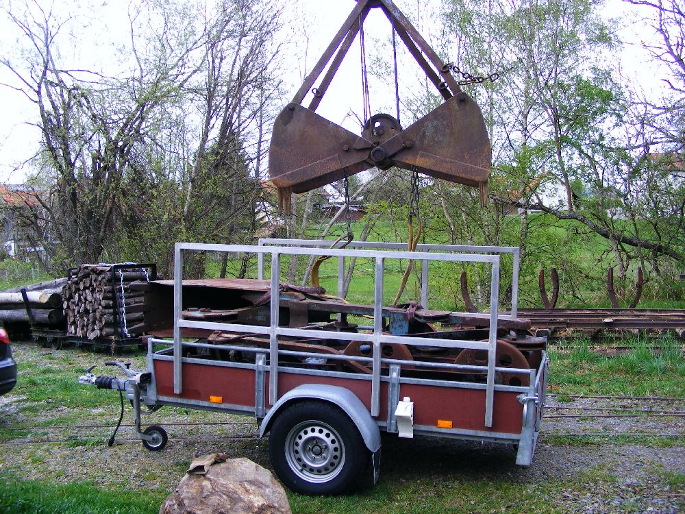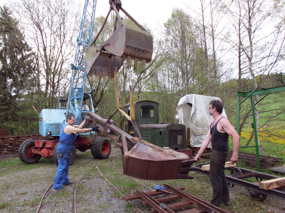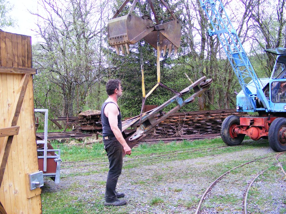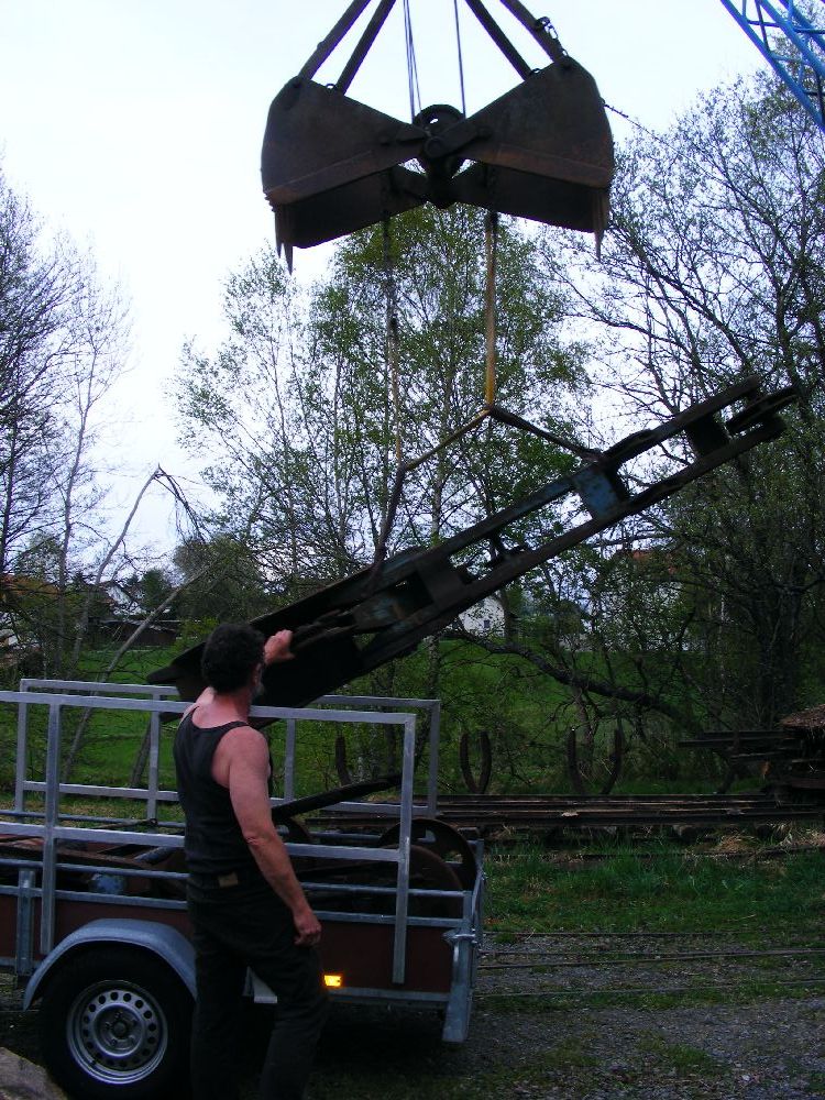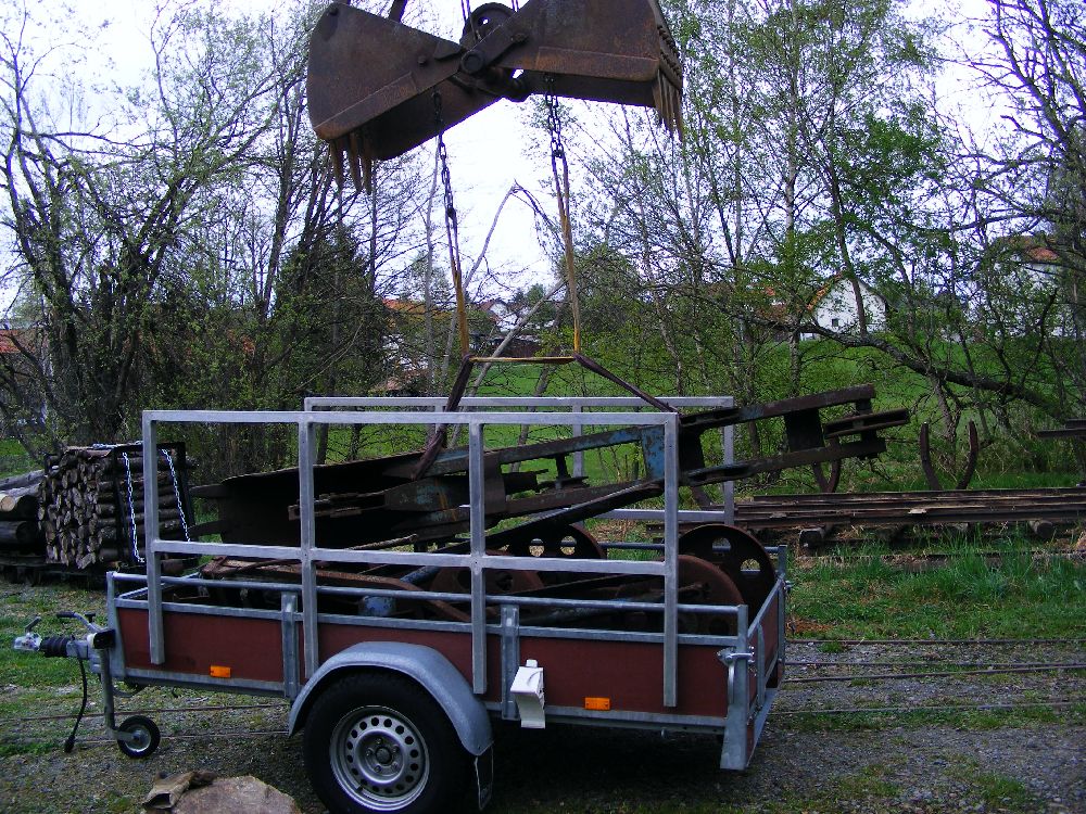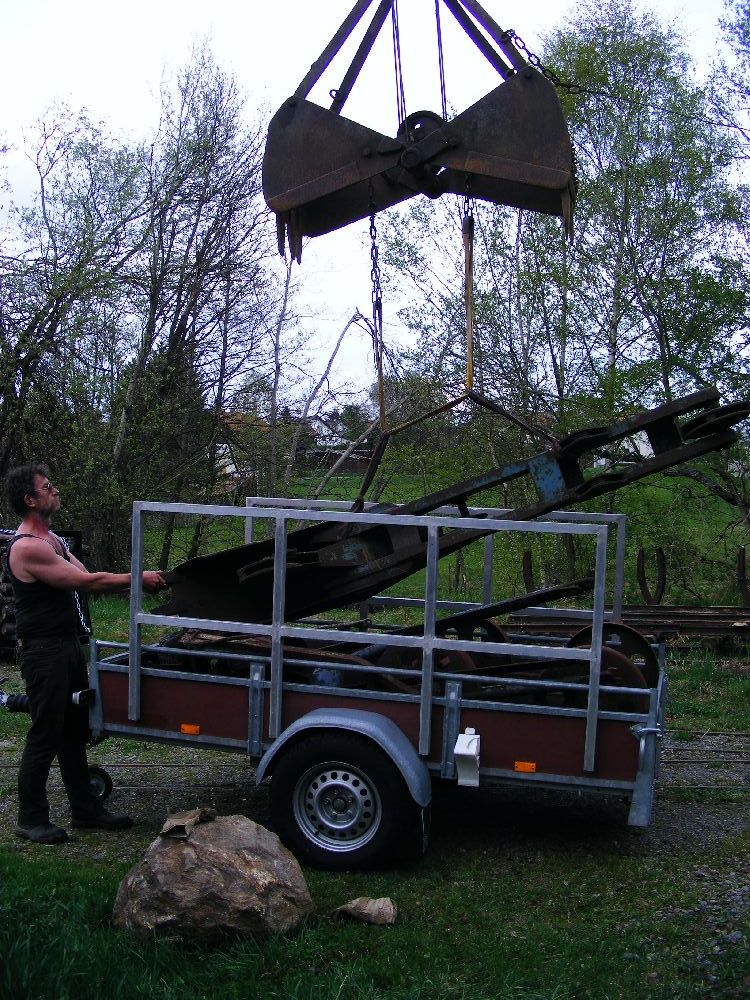 → Ein Tieflöffel für den Bagger. Er ermöglicht den Aushub kleiner Gräben mit dem Seilbagger |