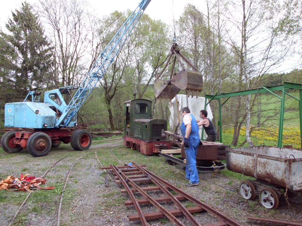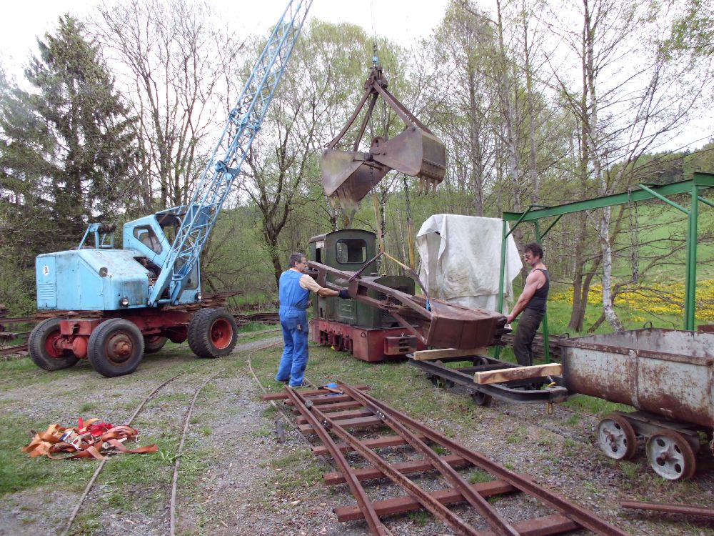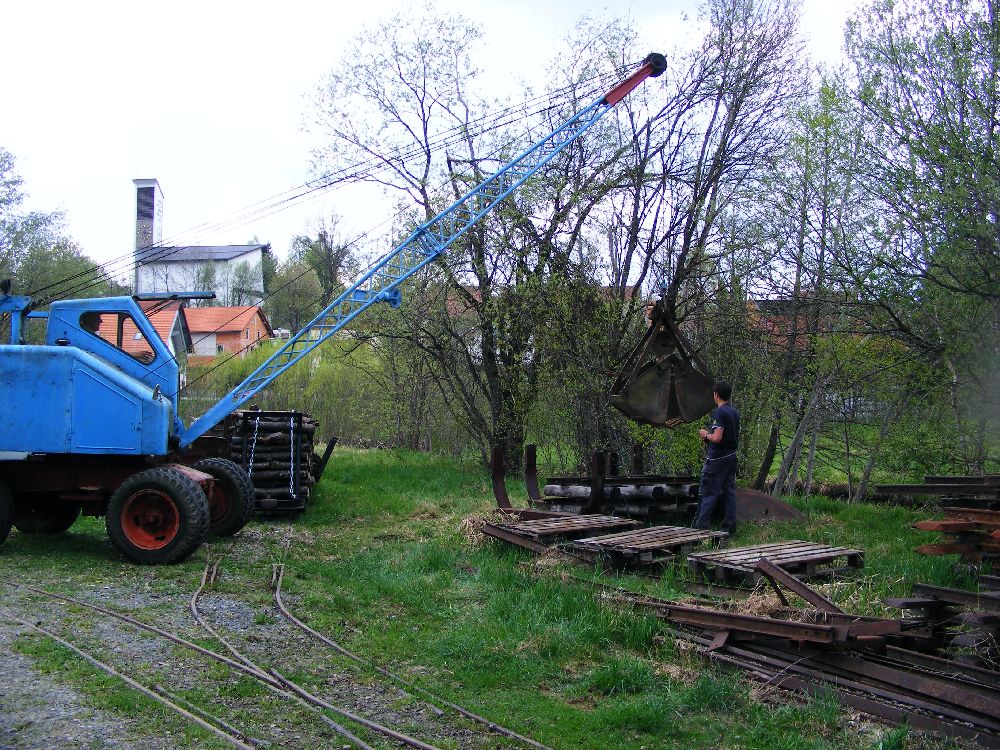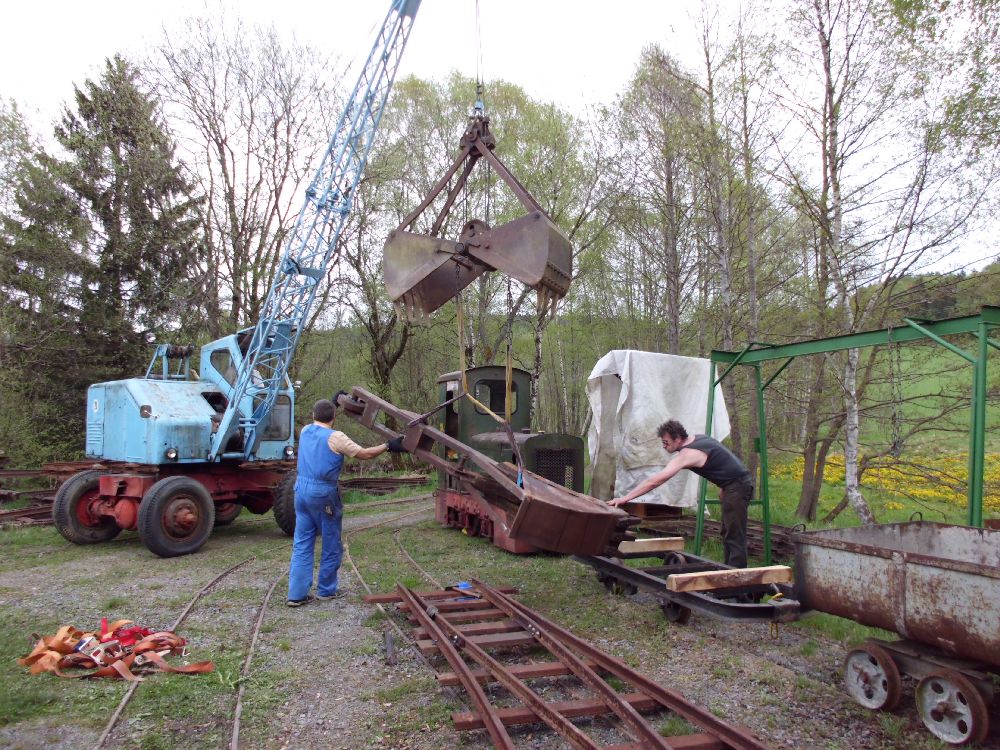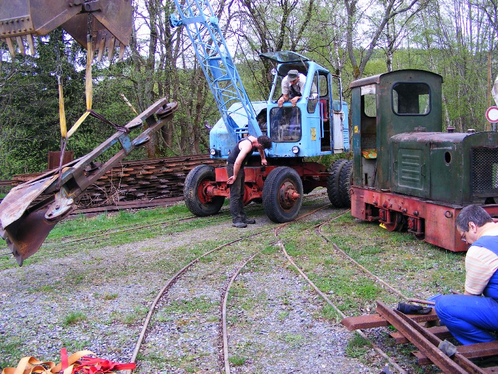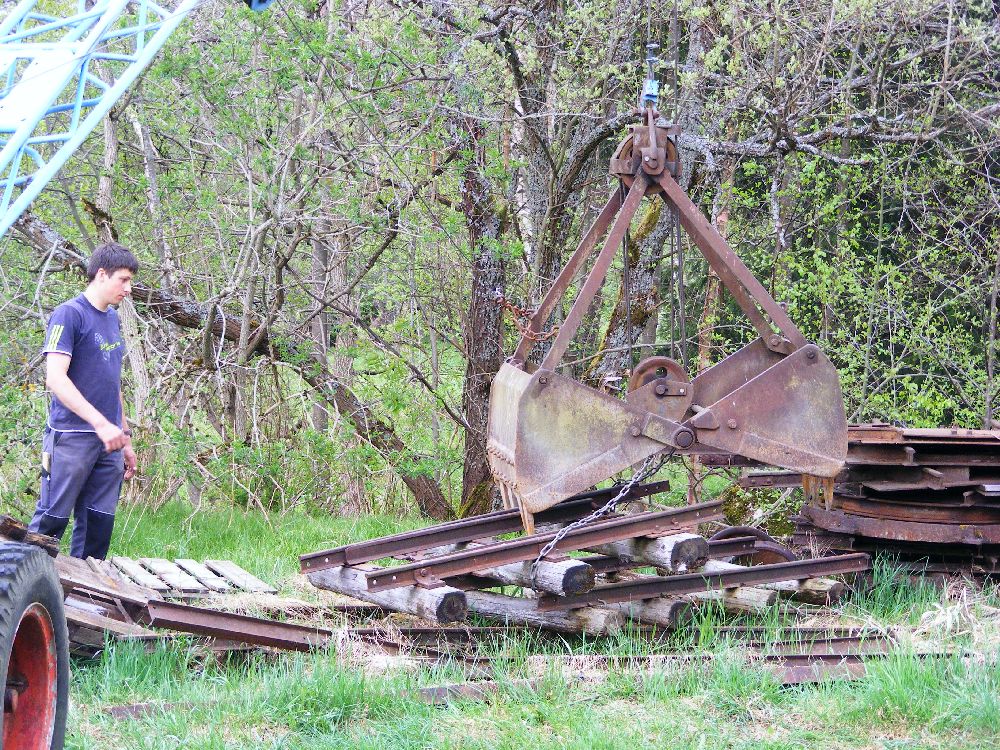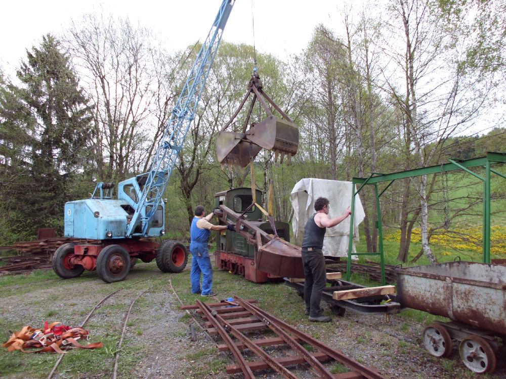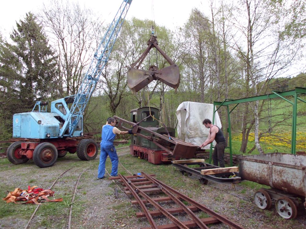 → Ein Tieflöffel für den Bagger. Er ermöglicht den Aushub kleiner Gräben mit dem Seilbagger |