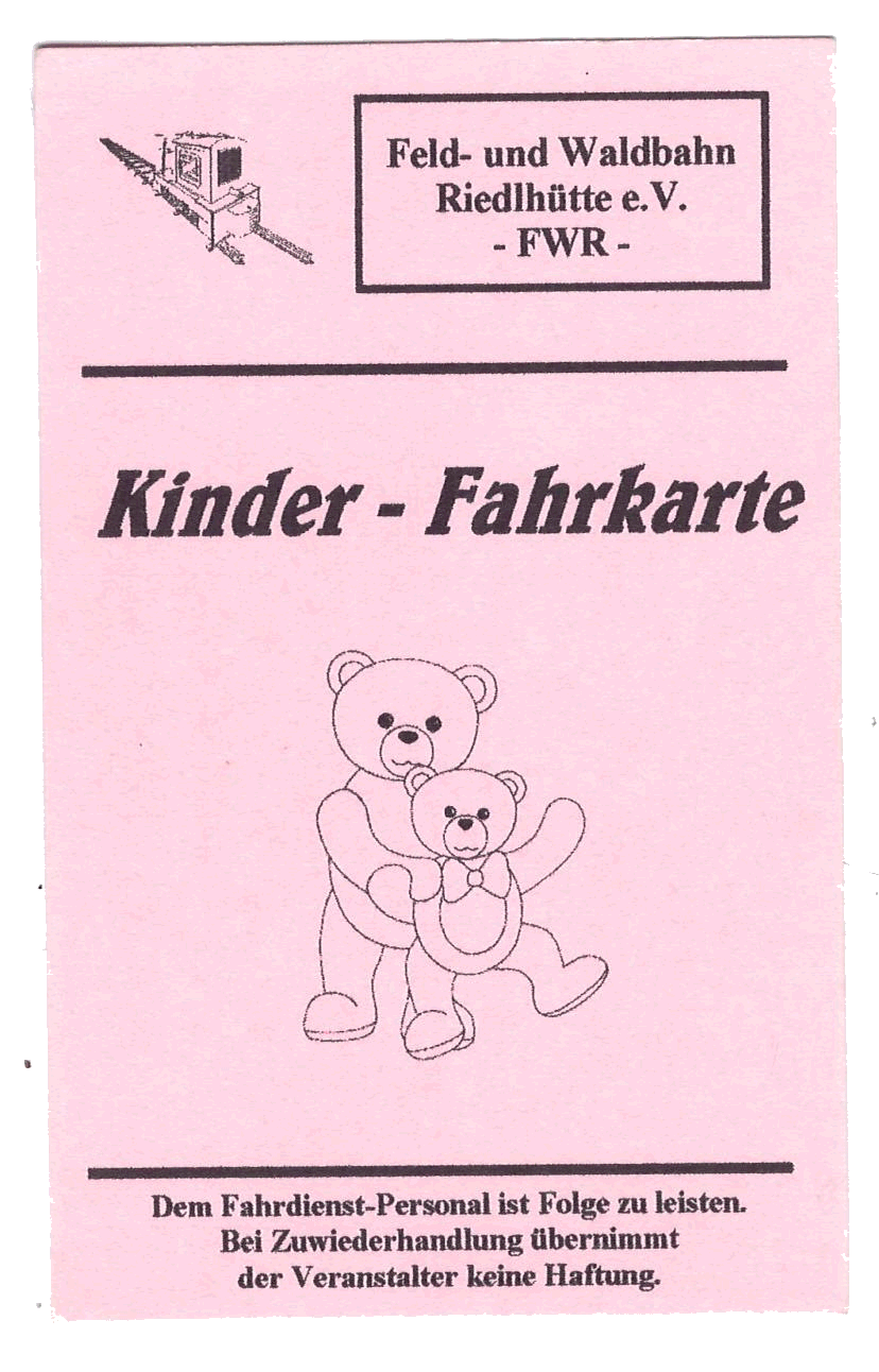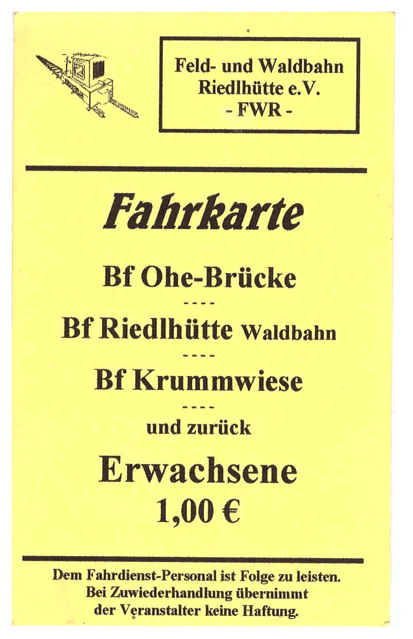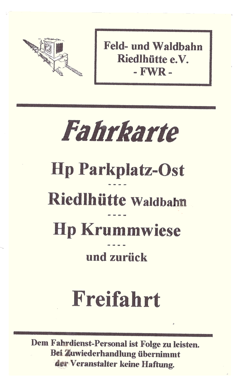 Alle Fahrscheine der Feld- und Waldbahn Riedlhütte in größerer Darstellung |
