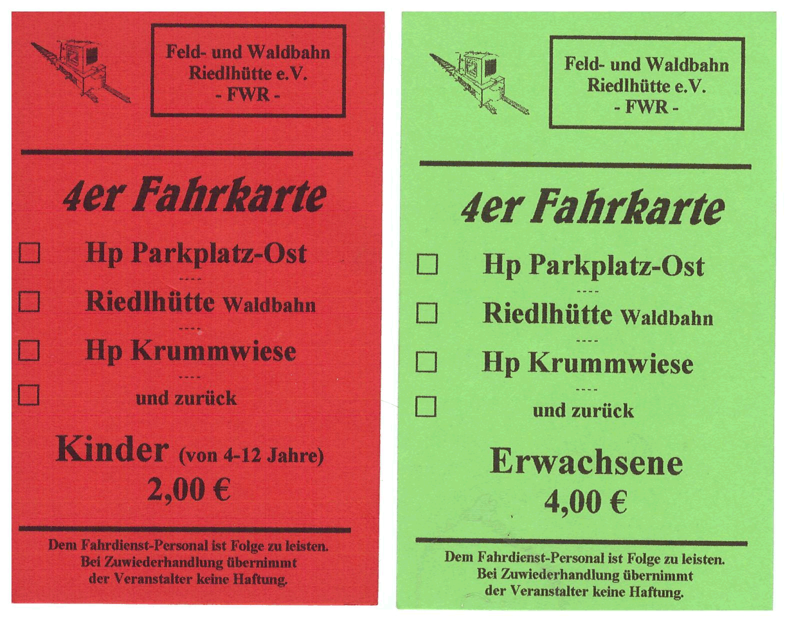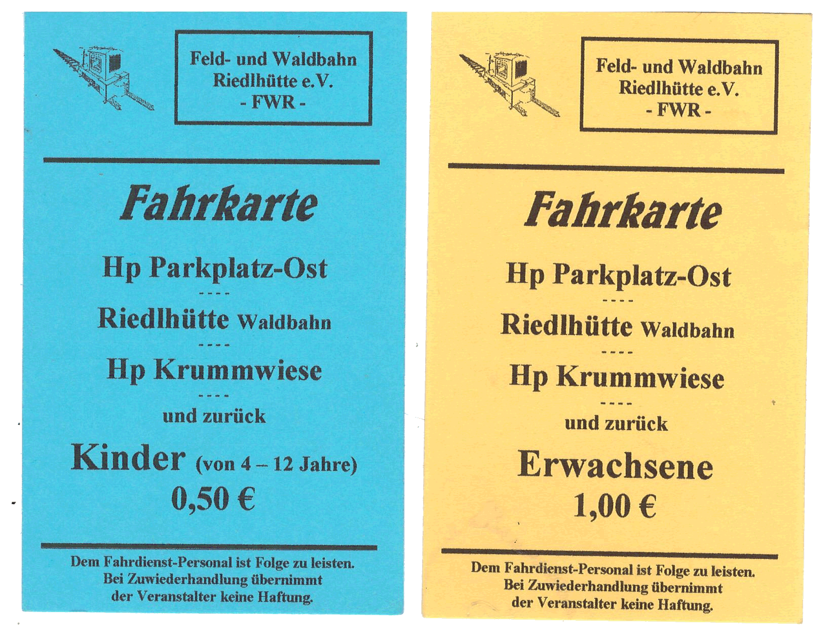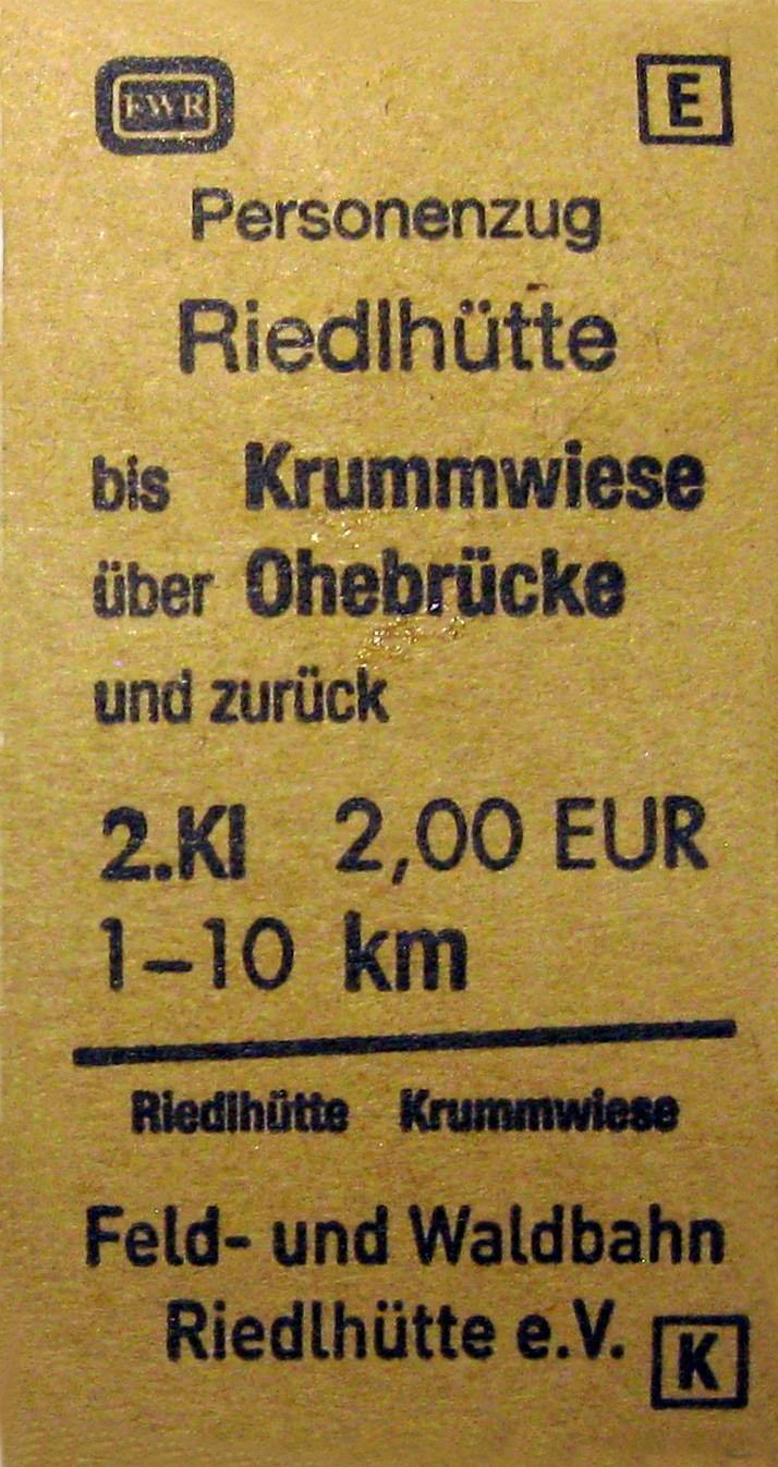 Alle Fahrscheine der Feld- und Waldbahn Riedlhütte in größerer Darstellung |