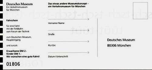 1996 - DM - Fahrscheine (Fahrbetrieb auf 470 m am Deutschen Museum) |