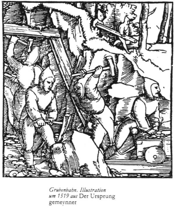 Im Zeitalter der Glaubensspaltung und Reformation Der Anfang im Bergbau - Die ersten Bahnen Besagte Bretter und Bohlen aber auch Rundhölzer waren zu eigenen Fahrwegen geworden. Geschehen war es im Bergbau. Ob nun im Harz oder in Transsylvanien, darüber streiten sich die Gelehrten. Tatsache ist, das in einer größeren Zahl von Abhandlungen des 16. Jahrhunderts von hölzernen Wagenbahnen berichtet wird. Die bekannteste stammt von Gregorius Agricola (Gregor Bauer) aus dem Jahre 1556. Aber er hatte schon Vorläufer. Sebastian Münster hatte sechs Jahre vorher eine Grubenbahn im Elsaß beschrieben. Aber auch in Tirol und in Osteuropa gab es sicher schon solche Bahnen. Man kennt ein Glasfenster aus der Zeit um 1350 was so etwas wie einen schienenähnlichen Transportweg zeigt. Es ist anzunehmen das die Burgen und Kathedralen dieser Zeit nicht ganz ohne solche Hilfen erstellt wurden. Von all den nun aufkommenden Wagenbahnen liefen die wenigsten in Spurrillen, nur eine Zwangsweise Spurführung war ihnen gemeinsam. Wie das erreicht wurde war sehr unterschiedlich. Sicherlich war der Aufbau der Wagenbahnen sehr von dem zur Verfügung stehenden Material und den Besonderheiten des Einsatzortes abhängig. Vor allem die am Anfang vorhandenen Mittel werden den Ausschlag gegeben haben. Eines ist aber allen gefundenen Lösungen gemeinsam, es gibt sie in irgend einer Variante auch noch heute und alle der geschilderten hölzernen Wagenbahnen kamen ohne die klassischen Spurrillen aus. Es war die Suche nach dem einfachen Fahrwegsystem. Er sollte mit wenigen Teilen und Mitteln herzustellen sein und bekannte Techniken nutzen. Nun die wichtigsten