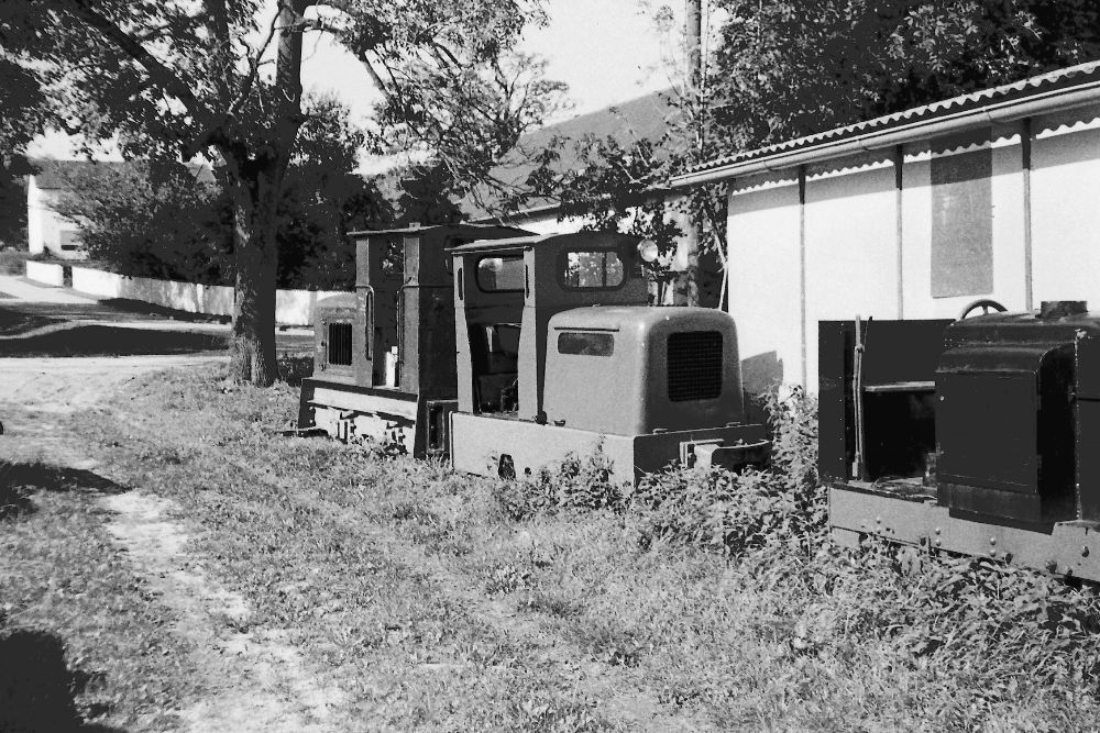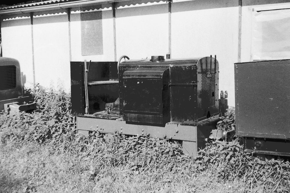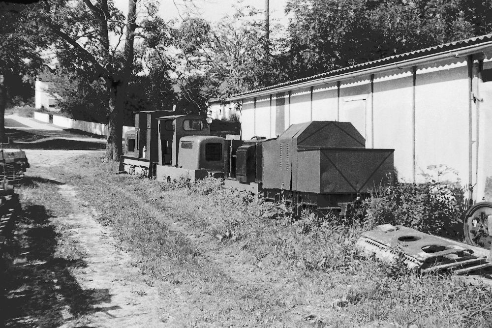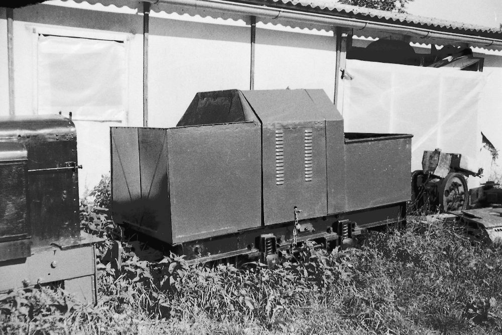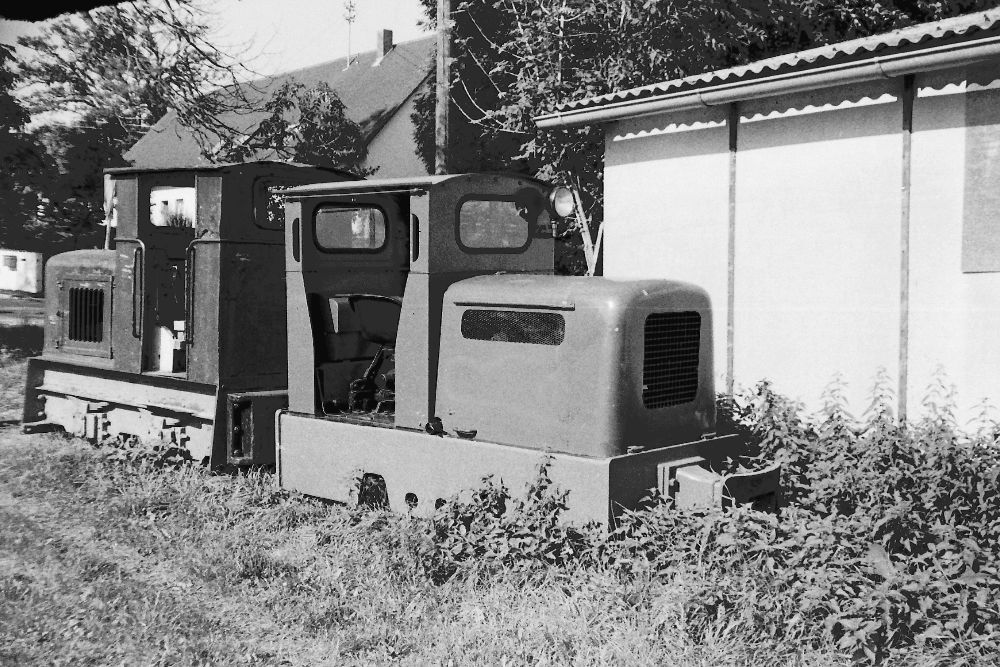 vorne stehenden Loks mit dem Trecker zu ziehen ist dieser aufgestiegen