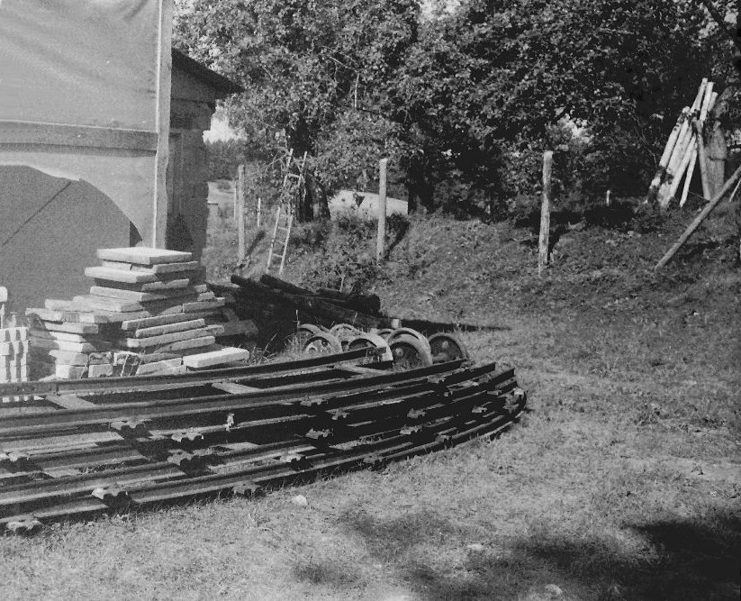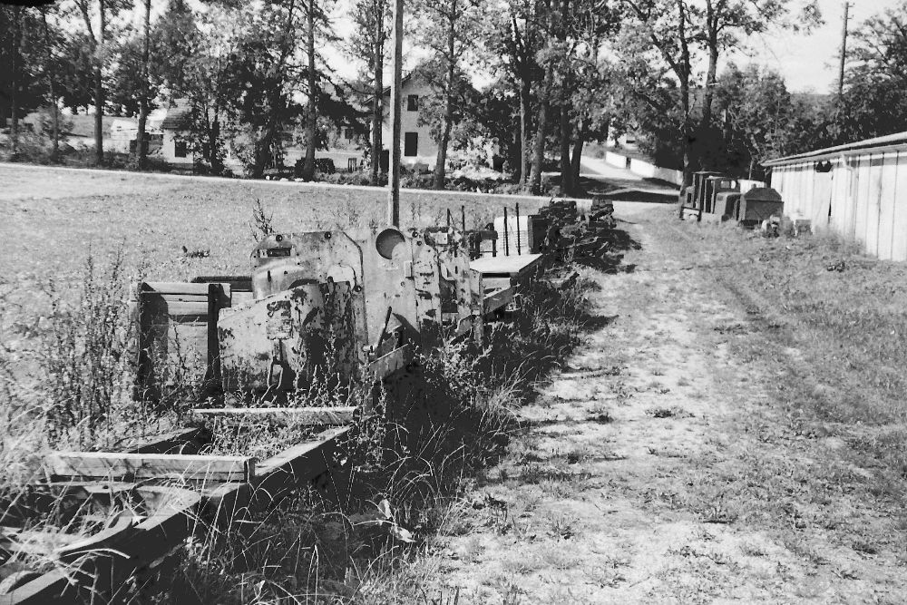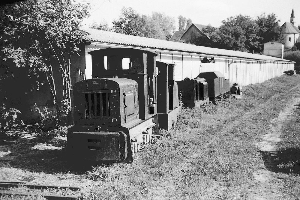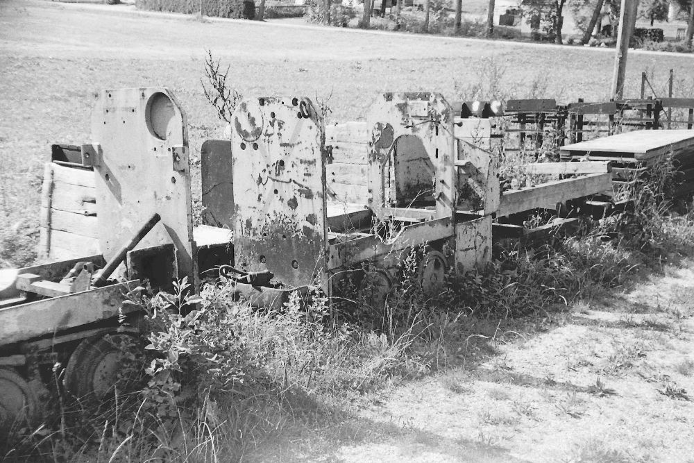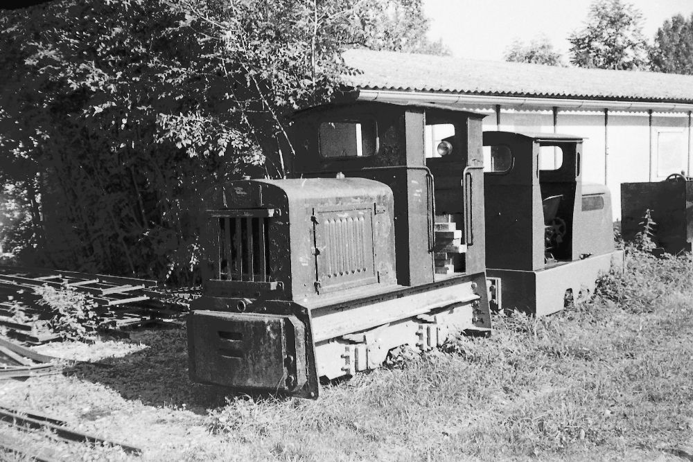 vorne stehenden Loks mit dem Trecker zu ziehen ist dieser aufgestiegen