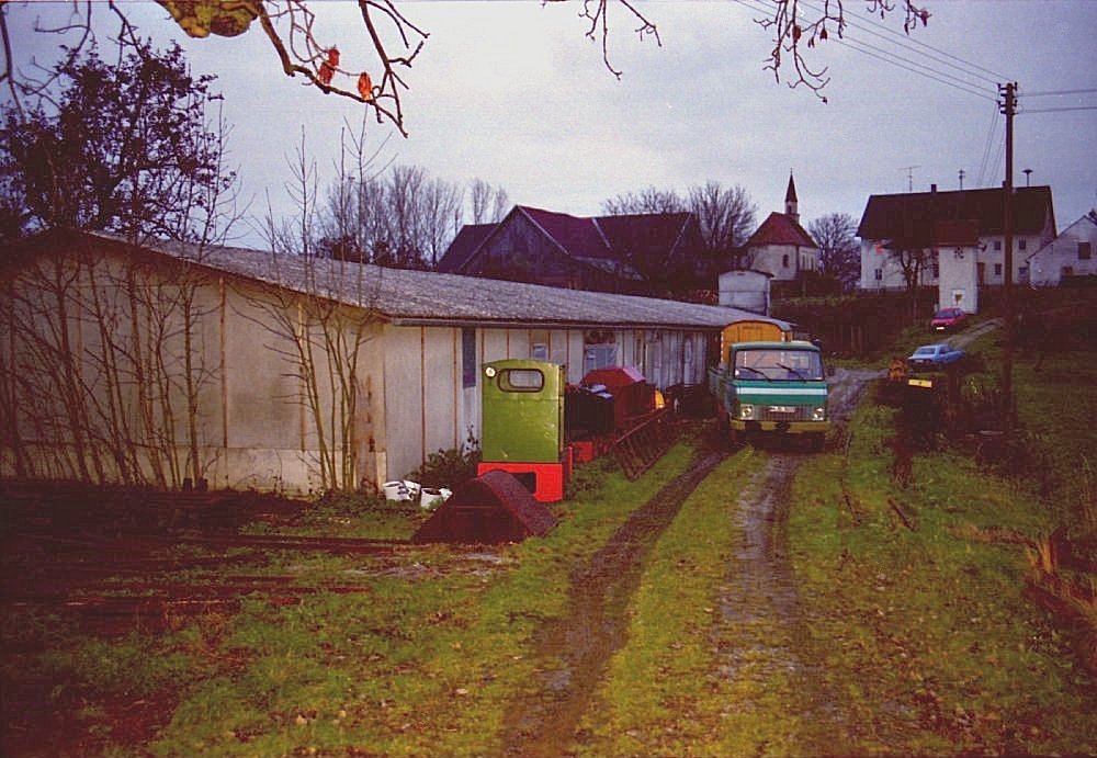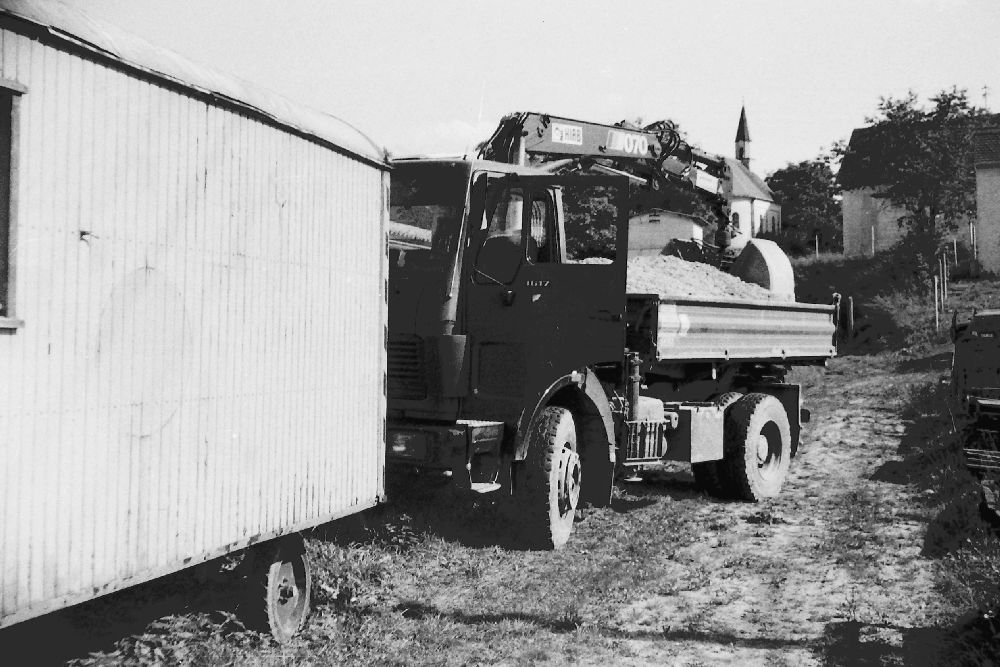 Ein Bauwagen und eine Fuhre Kies für die Einfahrt in die Halle