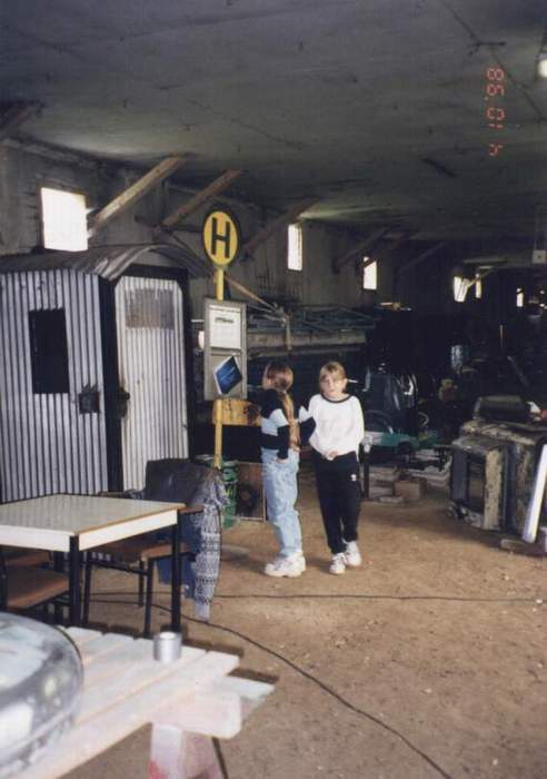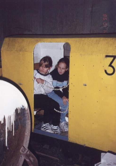 Überraschender Besuch in unserer Halle Anfang Oktober 1998. Es gibt strahlende Augen bei den Töchtern unseres Berliner Vorstandes, die die Bahn zum ersten mal sehen.