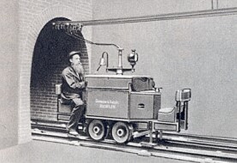 Die ersten elektrischen Lokomotiven der Welt von Siemens - Die erste E-Lok der Welt als Ausstellungsbahn in Moabit und erste Grubenlokomotive