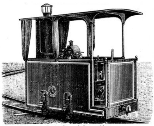 Motorlokomotive der Firma J.M. Grob & Co., Leipzig-Eutritzsch abgebildet im Brockhaus Konversations-Lexikon1898