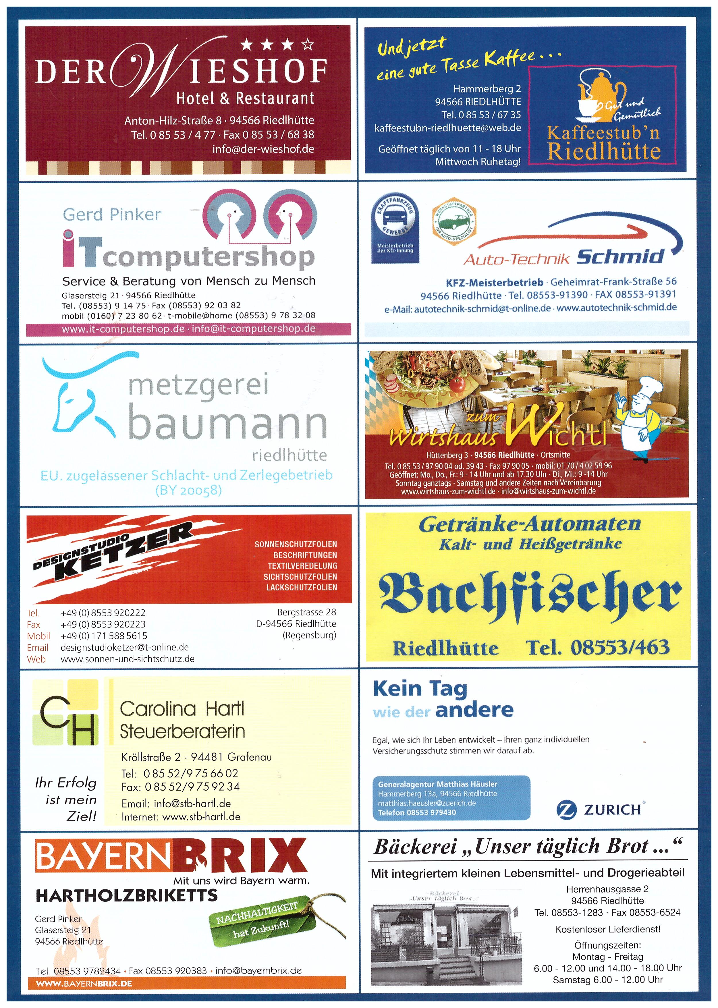 Riedlhütte Tel: 08553-6083 oder im Internet: