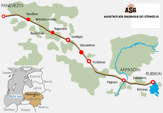 gegründete Schmalspurbahn Panevėžys-Anykščiai-Rubikiai in Litauen