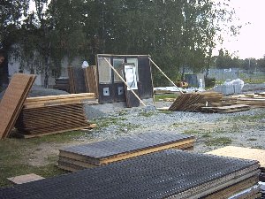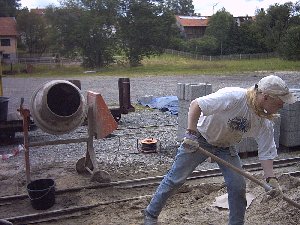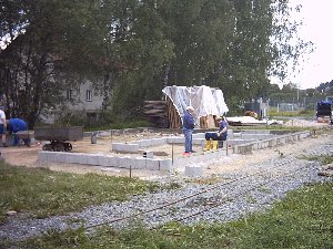 mit dem Beton und setzten Ankerdübel für den Bodenbalken.