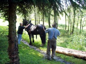 Nur fürs Fernsehen: Holz ziehen mit dem Pferd und verladen mit der Hand wie früher