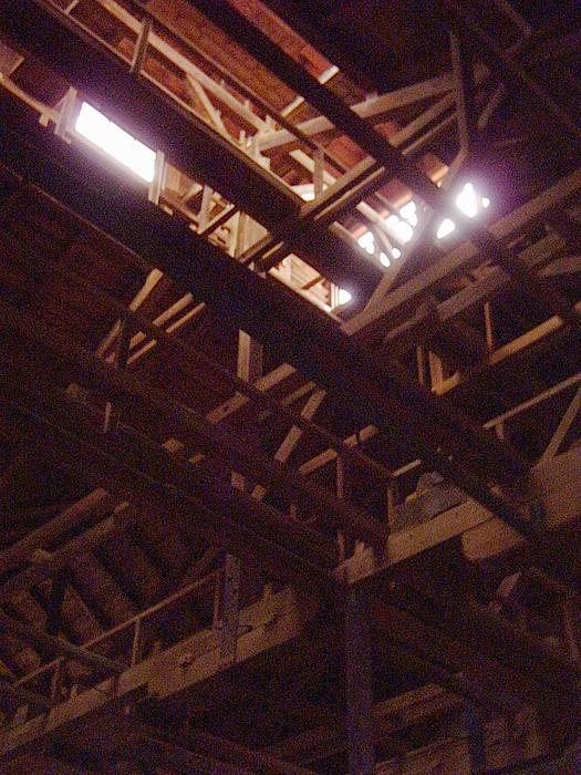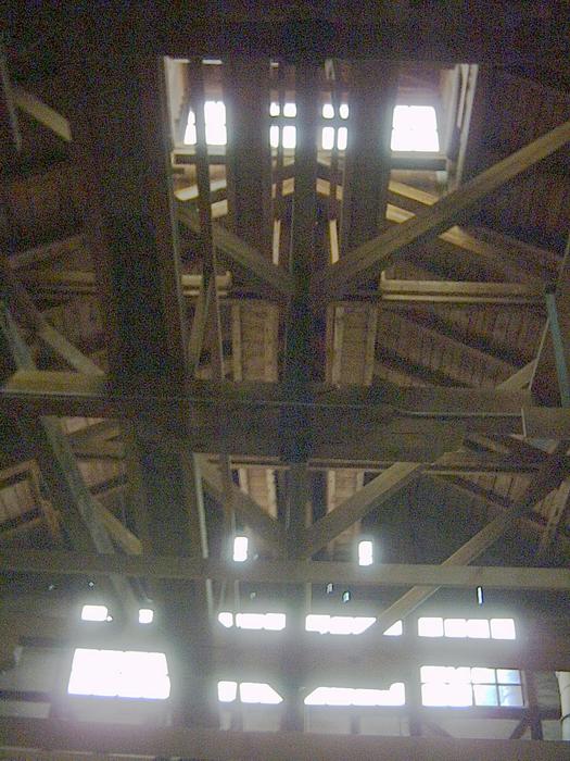 Die gesamte Holzkonstruktion des Daches ist sehenswert, dort oben verlaufen sogar Wartungswege mit Geländer