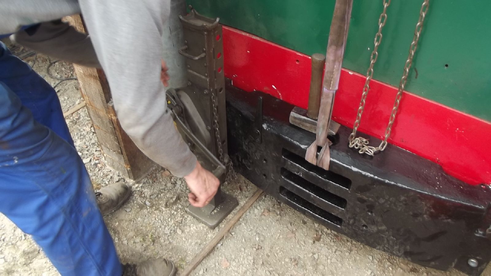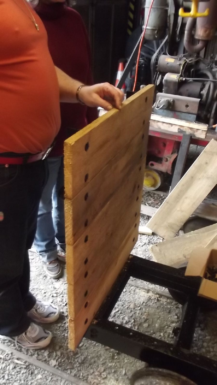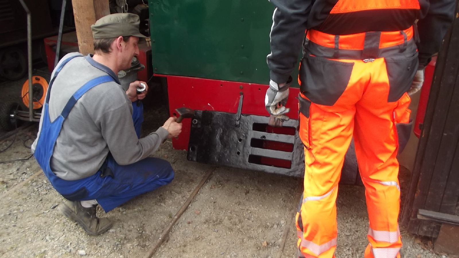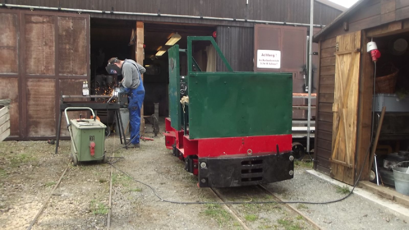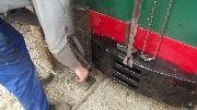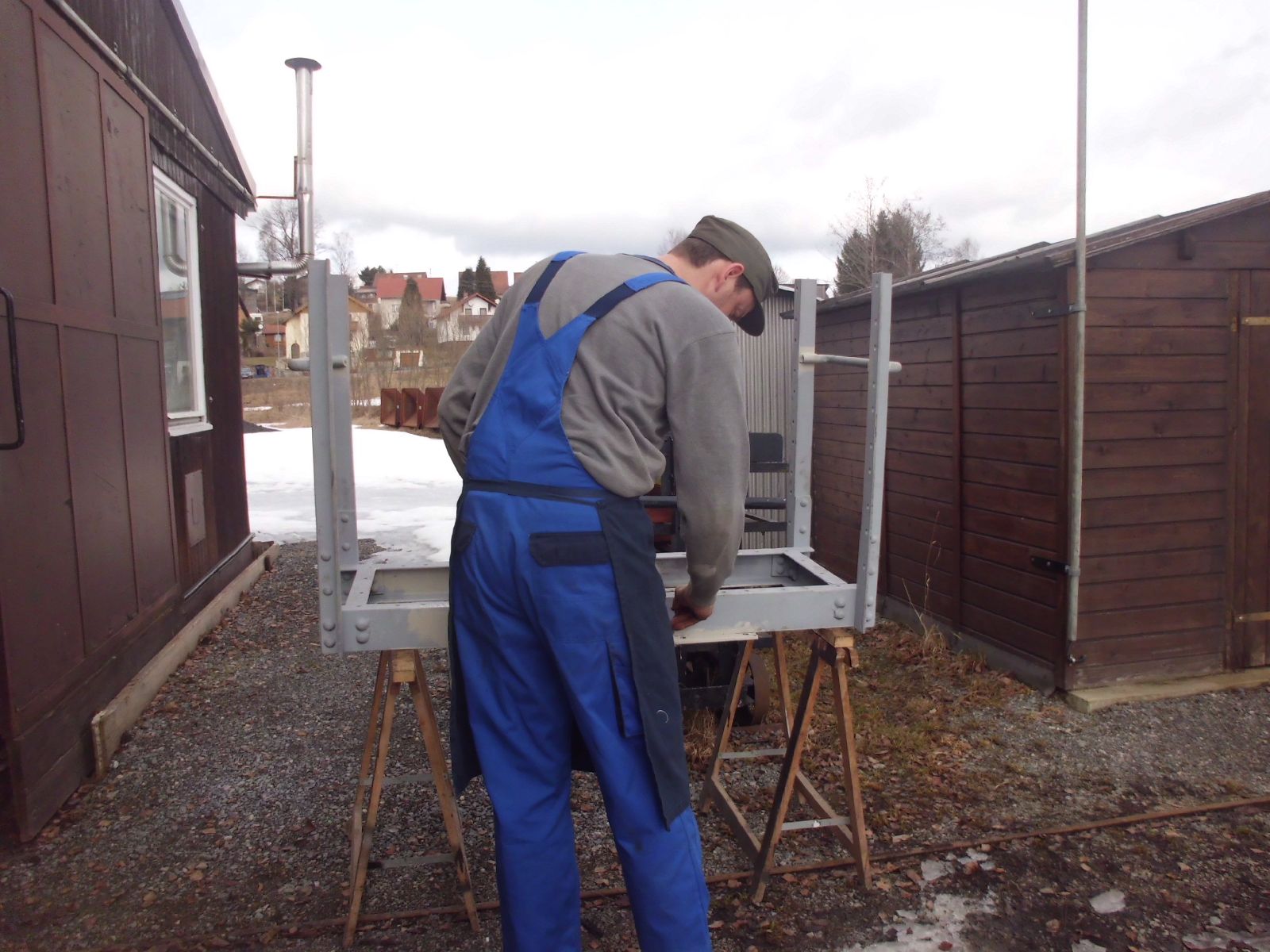 → Am 5. April wurde gearbeitet. An der Gmeinder wurden die fehlenden Pufferbohlen montiert. Dabei stellte sich heraus das diese unterschiedlich gebohrt waren und deshalb nicht vertauscht montiert werden konnten. Die Bohlen hingen sonst schief an der Lok. |
