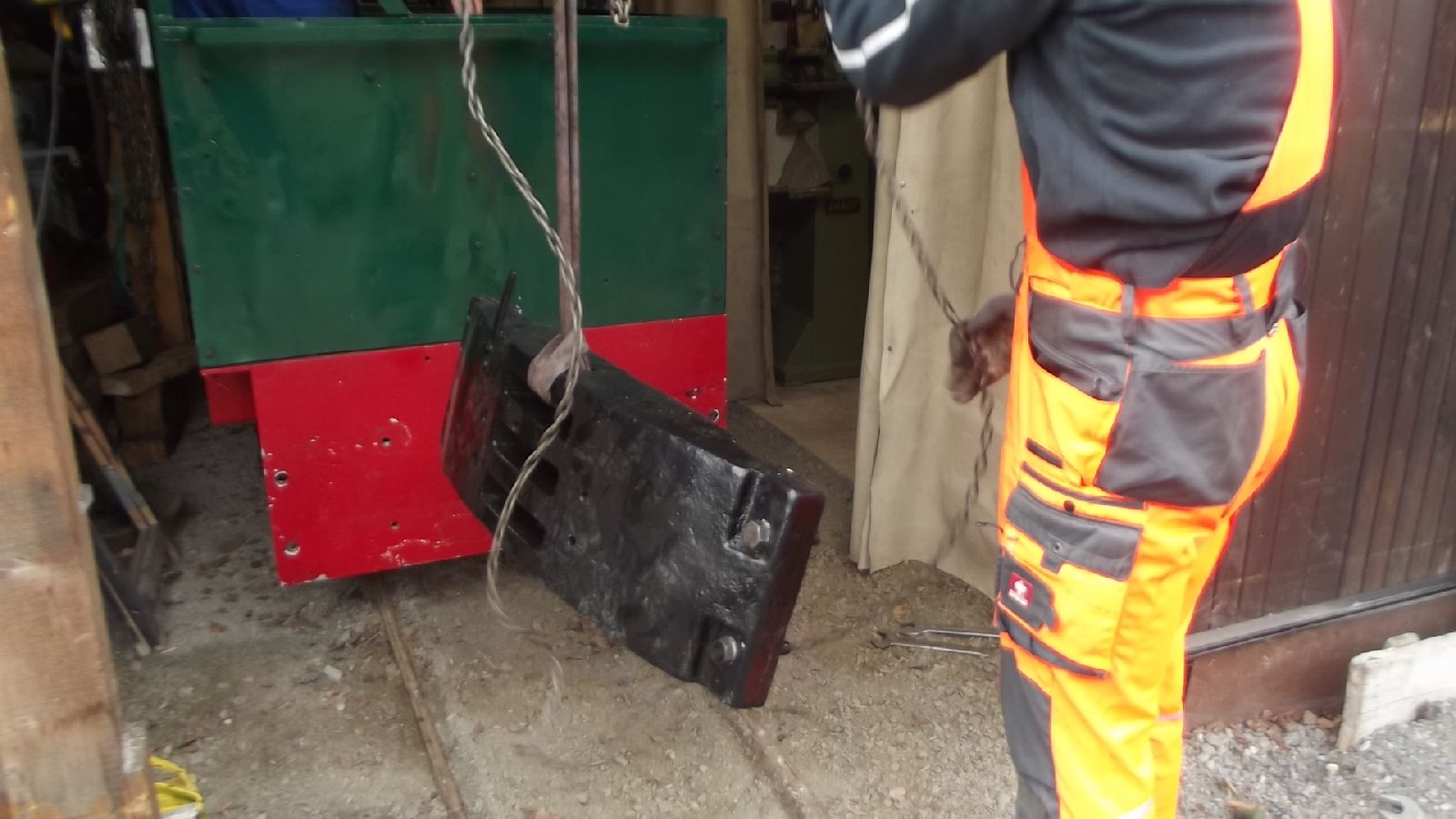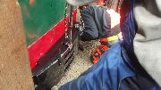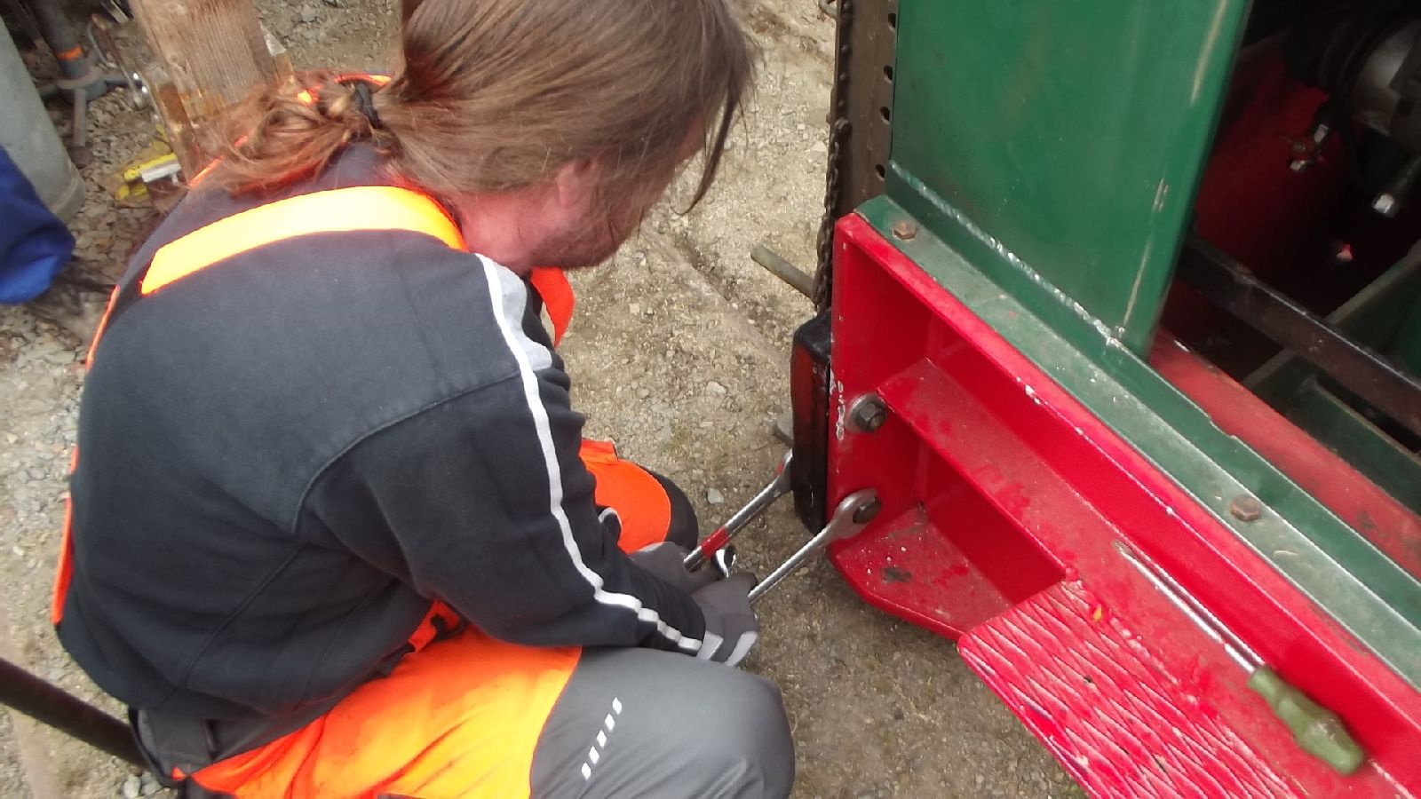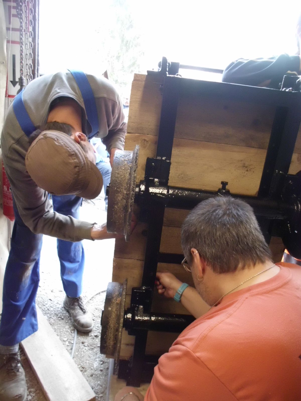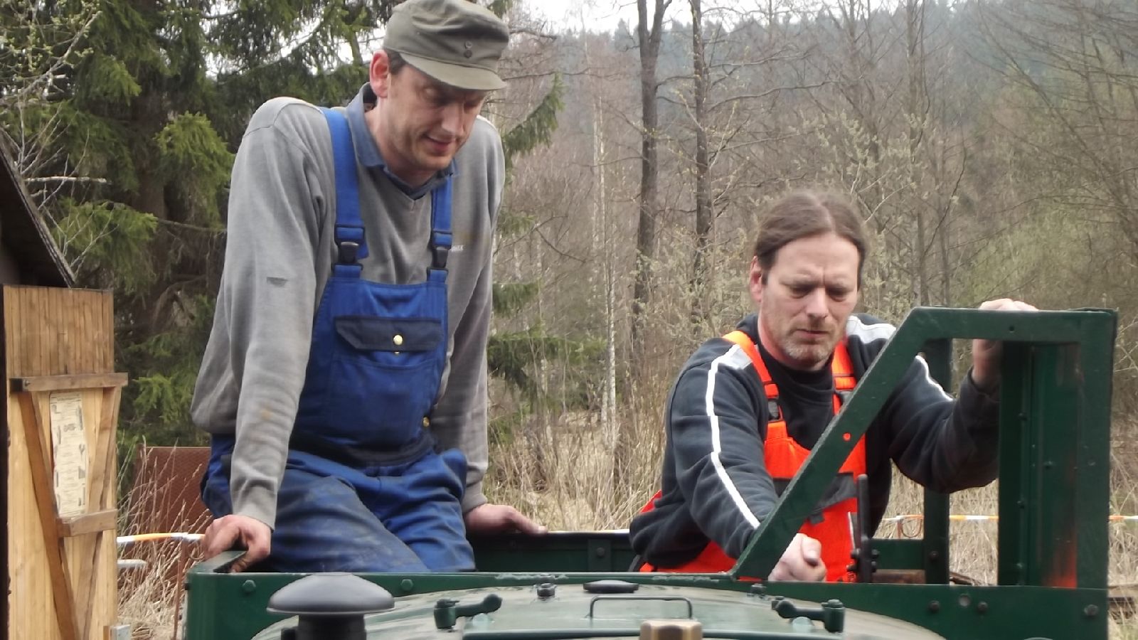 → Am 5. April wurde gearbeitet. An der Gmeinder wurden die fehlenden Pufferbohlen montiert. Dabei stellte sich heraus das diese unterschiedlich gebohrt waren und deshalb nicht vertauscht montiert werden konnten. Die Bohlen hingen sonst schief an der Lok. |