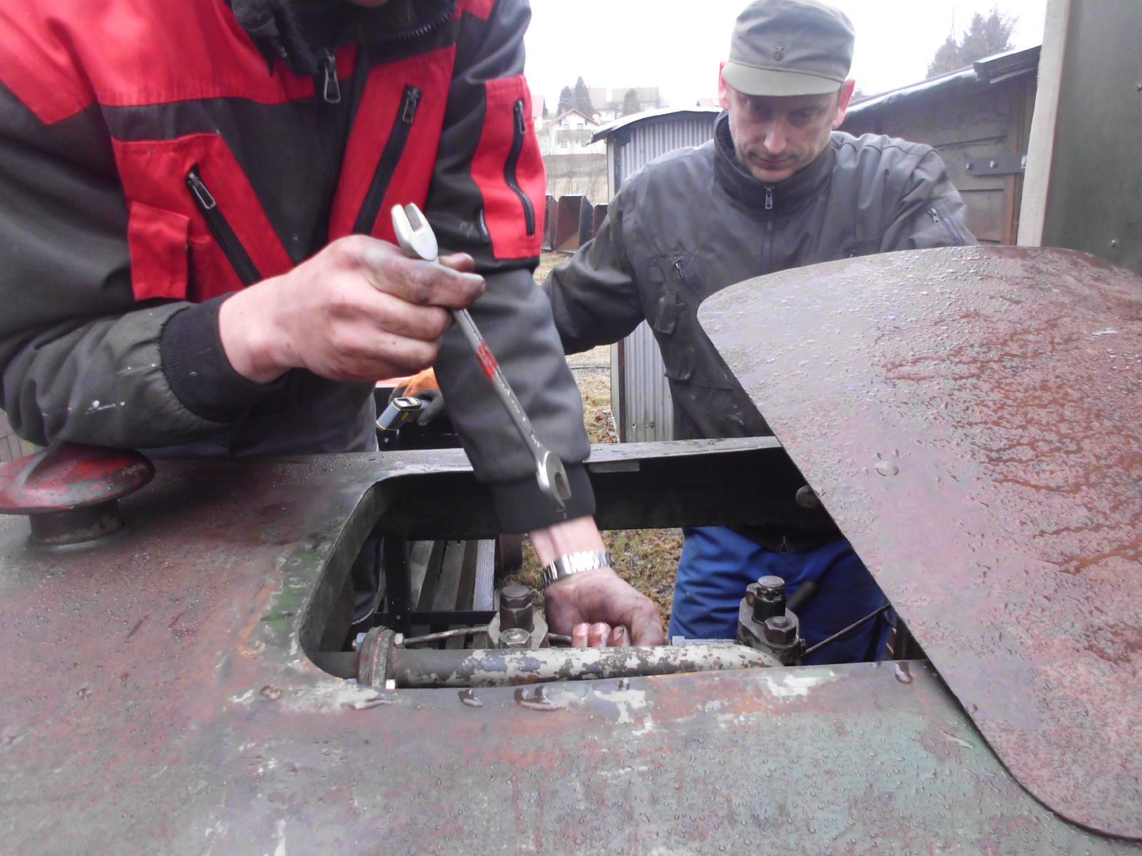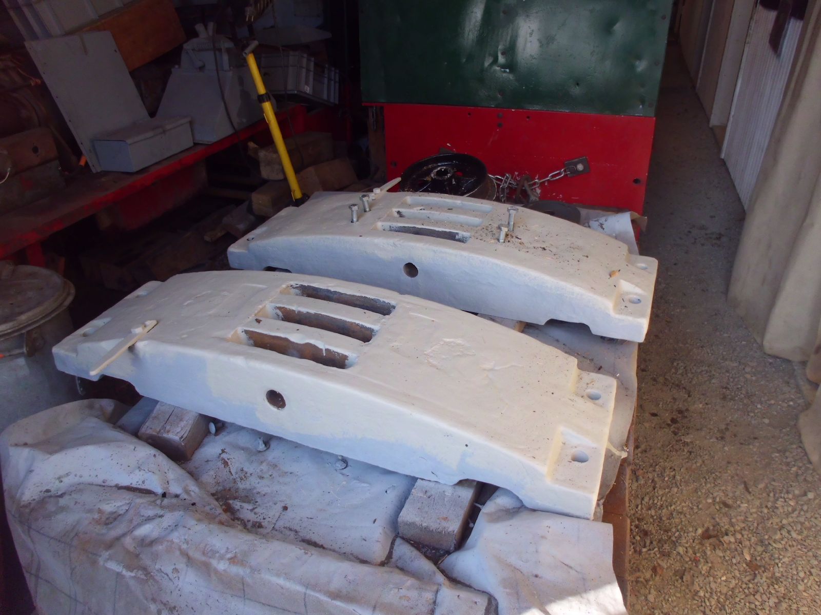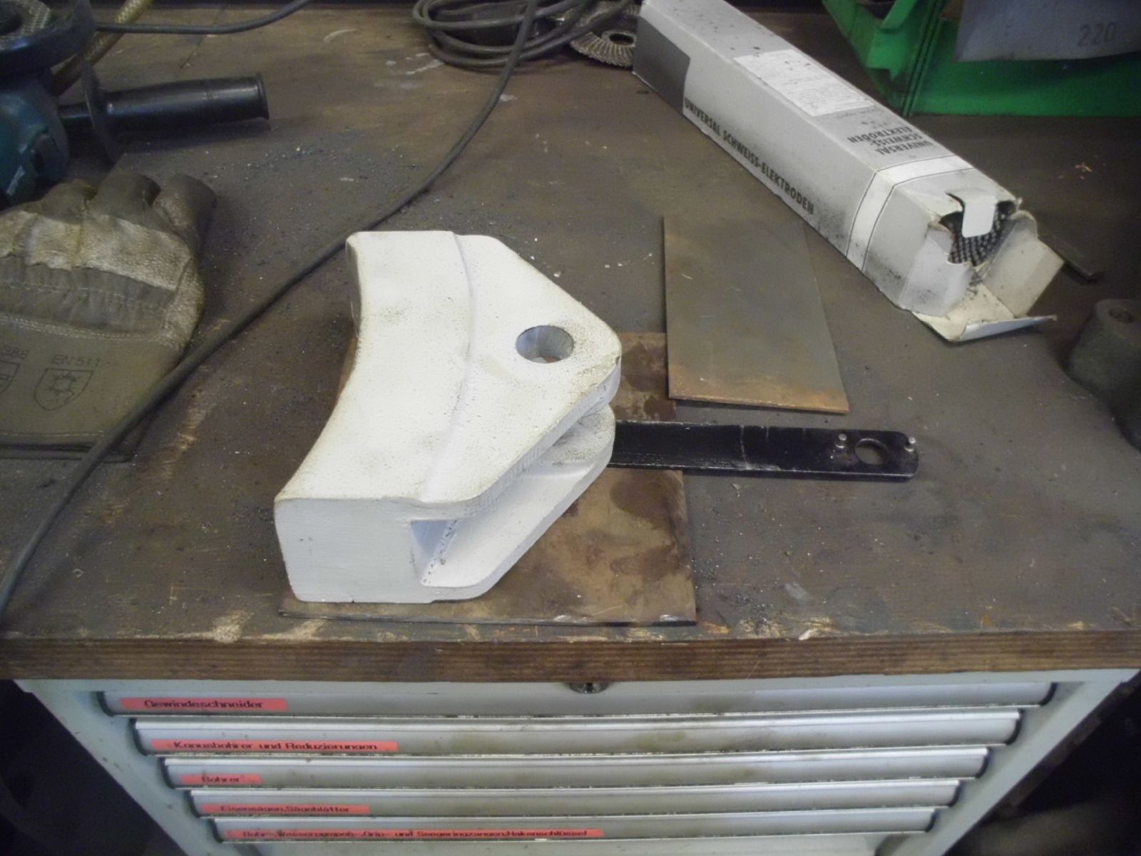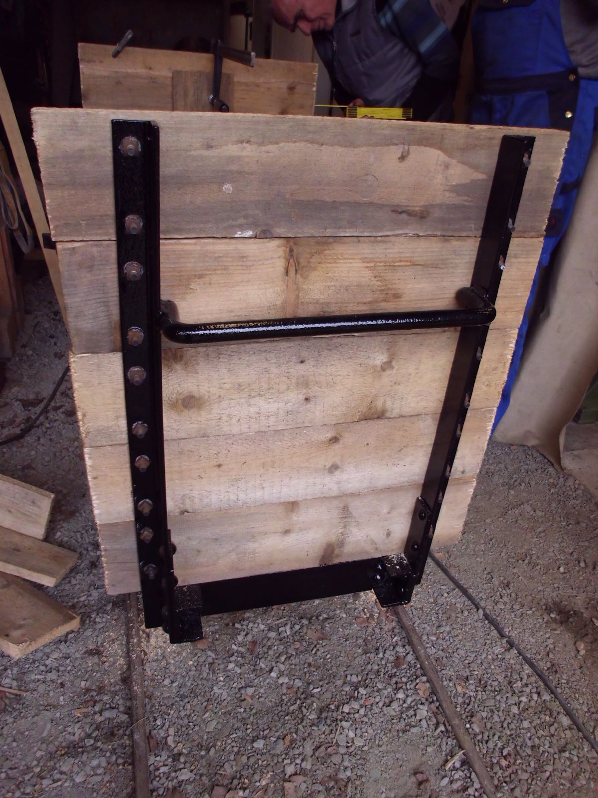 → Am 5. April wurde gearbeitet. An der Gmeinder wurden die fehlenden Pufferbohlen montiert. Dabei stellte sich heraus das diese unterschiedlich gebohrt waren und deshalb nicht vertauscht montiert werden konnten. Die Bohlen hingen sonst schief an der Lok. |