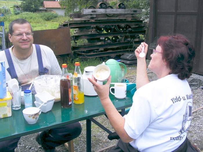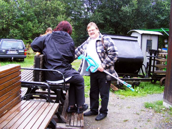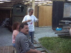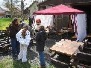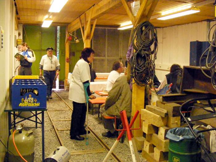 Vorstand unseres Vereines beim Aufbau der Feldbahn in Riedlhütte.
