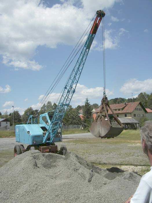 Seilbagger ist betriebsbereit. Für ihn ist eine Seilflasche,