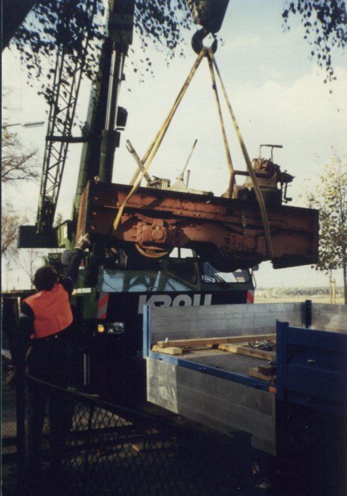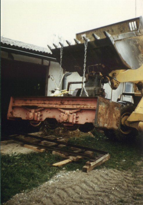 Den Rahmen mit einem Radlader aufs Gleis setzen,