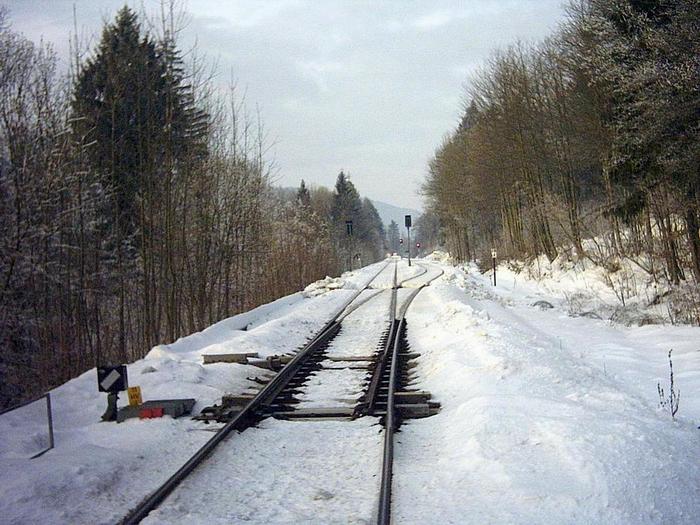 Man möchte die Taktzeit erhöhen, bei gleichem oder geringerem Aufwand. macht aber die Rechnung ohne den Kunden, denn die weiteren Umständlichkeiten bleiben bestehen. Bahnhöfe in der Pampas, lange Anfahrten, lange Wartezeiten nach wie vor beim Umsteigen, lange Fahrzeiten und auch der Preis rechnet sich nach wie vor nicht, wenn man entferntere Ziele ansteuert und die Gesamtkosten von Haustür zu Haustür berechnet, von der Gesamtfahrzeit ganz zu schweigen. Die meisten Orte sind inzwischen mit der Bahn sowieso nicht zu erreichen. Und nicht alle Kunden fahren nur von einer Großstadt zur anderen Großstadt. Wer die Ballungsraume verläst fährt inzwischen in eine Verkehrswüste, ohne Auto geht hier gar nichts mehr. Am Wochenende fährt nicht mal ein Bus. Es gibt also nach wie vor keinen Grund mit der Bahn zu fahren. Auf jeden Fall nicht von hier. Einen Vorteil hat das ganze, man muss den Fahrplan nicht auswendig lernen, den alle Stunde fährt ein Zug vorbei. Jetzt hätte man die Wagen um kostengünstig mit wenig Wartung und geringem Personalaufwand zu fahren, jetzt fehlen die Schienen und Bahnhöfe und damit die Kunden. Diese haben sich längst fürs Auto entschieden und spielen lieber daheim mit der Modellbahn. Das ist der neue Begegnungsbahnhof bei Grafling Vorne, dort wo die Kurve sich abzeichnet, ist der alte Bhf. Grafling und das ist der neue Bhf. Grafling, aussteigen kann hier niemand. |